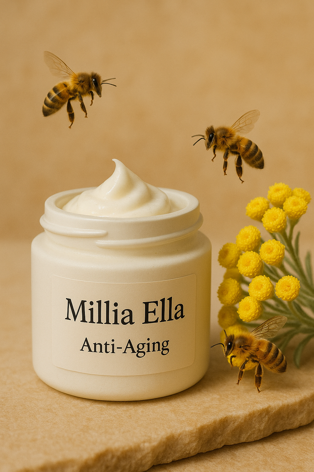 Diese High-Tech-Formel kombiniert die kraftvollen Wirkstoffe von Immortelle, Honig und 70-prozentigem Melitin. Millia Ella minimiert Hautunreinheiten und große Poren. Tiefgreifende Revitalisierung wirkt Hautalterung entgegen. Es verbessert sichtbar die Hautstruktur, erhöht die Elastizität und Festigkeit, verleiht maximalen Glow. Millia Ella steht für eine neue Generation von Kosmetik: exklusiv, wissenschaftlich fundiert, nachhaltig und emotional. Ideal für Frauen ab 30, die Wert auf eine wohltuende Hautpflege, natürliche Ausstrahlung und ein gutes Lebensgefühl legen.
